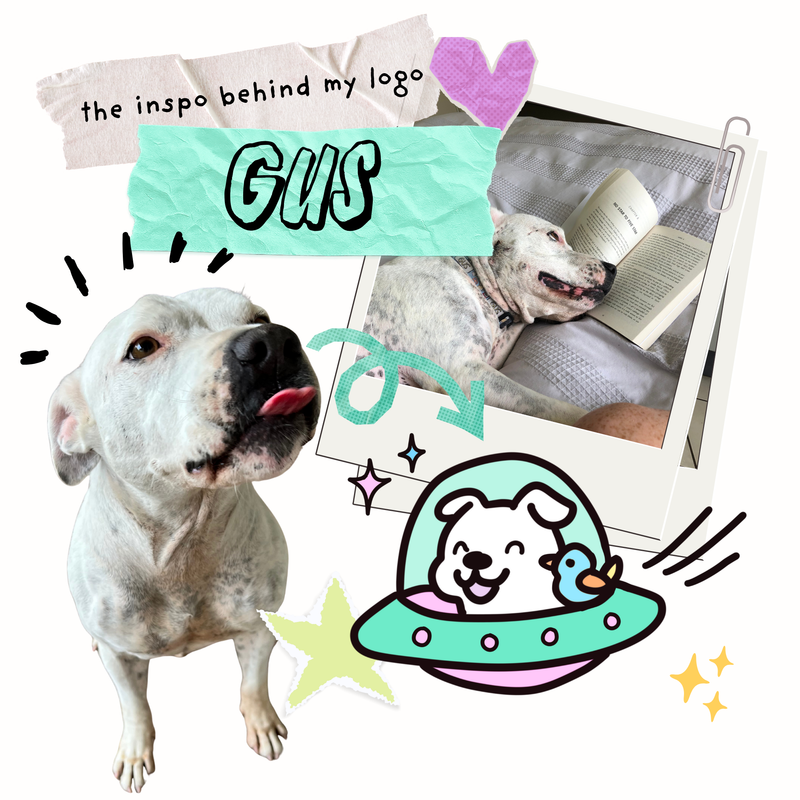When my little studio bestie Gus passed away in July, it felt like another nudge from the universe to just go for it. The Tiki Woof logo is Gus and his bird friend Jonathan . This was just my small way of keeping that super smiley pups energy alive.